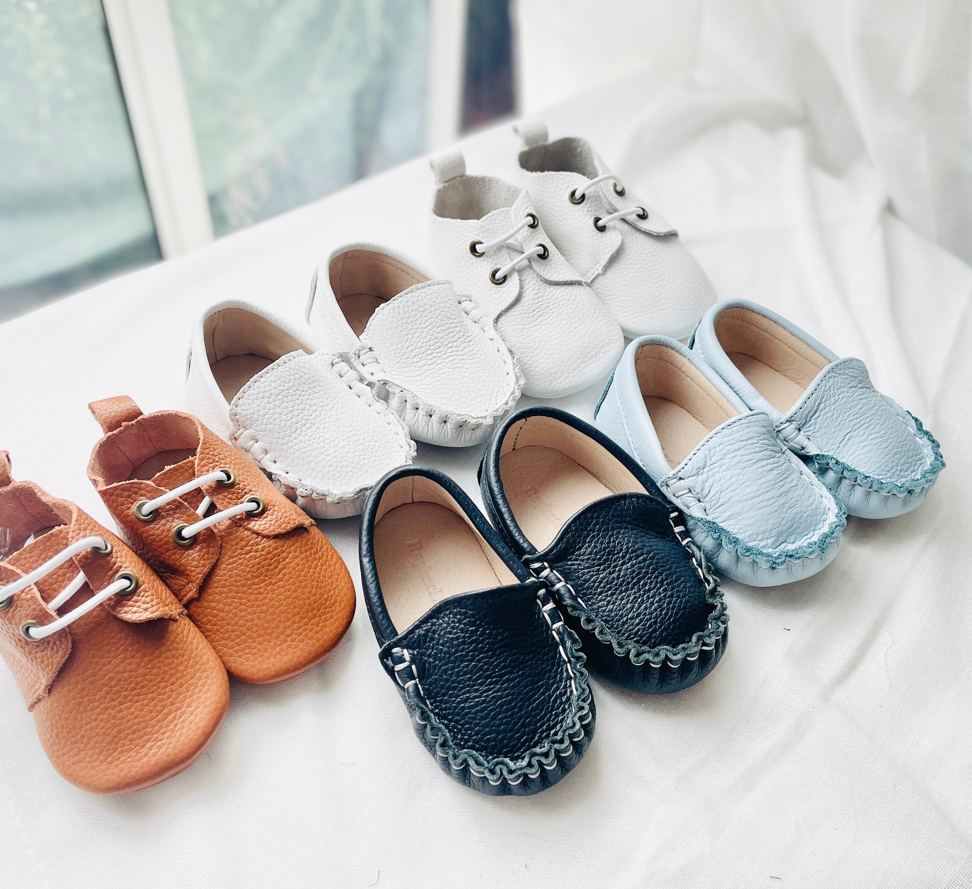 Options; Add shoes (as above plus 100% leather pre-walker or shoes in white with white laces, brown leather, or white mocassins