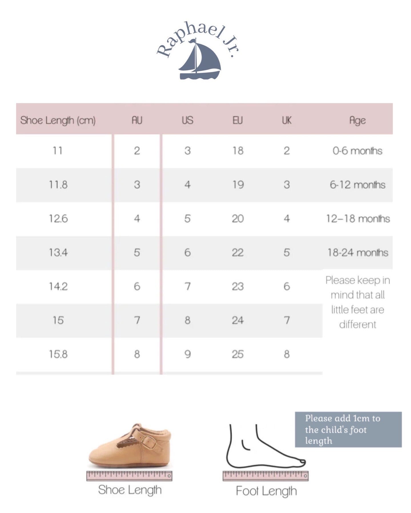 Shoe Sizes (soft soles)