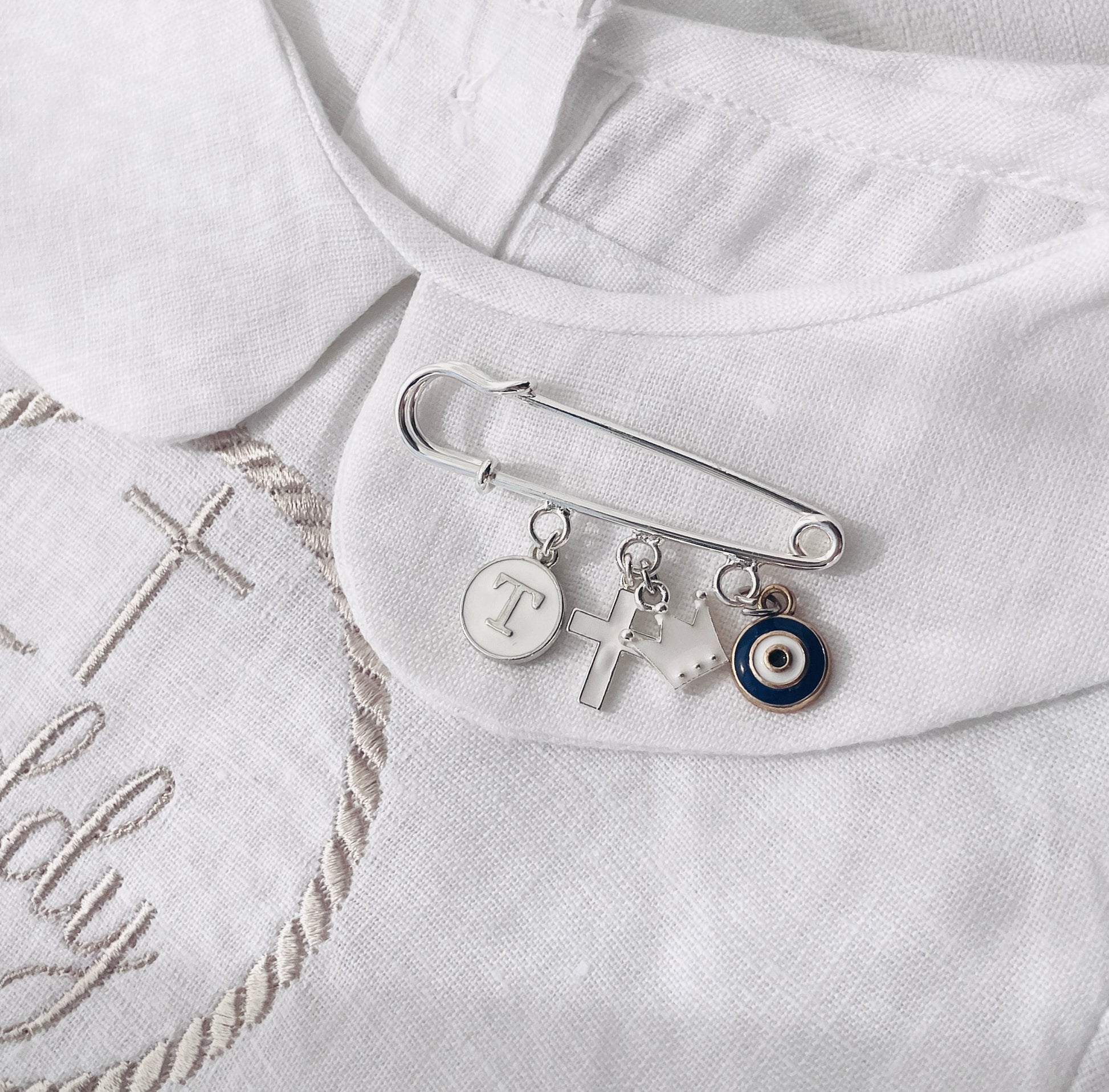 Gorgeous silver or gold safety pin brooch with your choice of ornaments. 3 or 4 ornaments can be included.