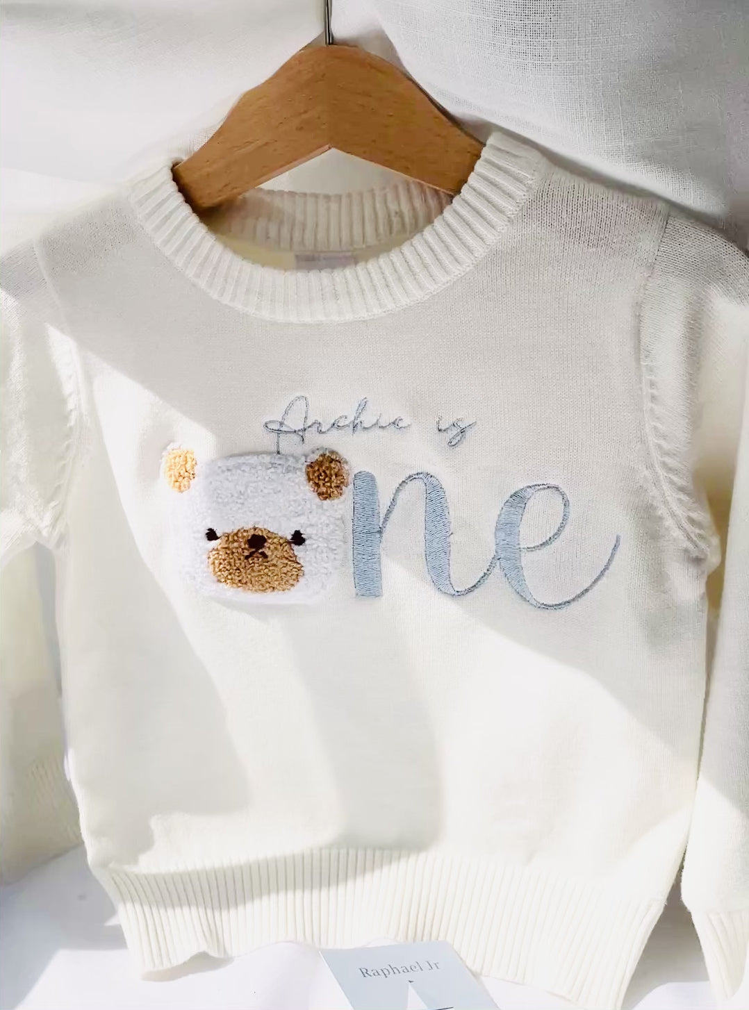 Baby first birthday whale teddy safari balloon sweater jumper with embroidery of your choice