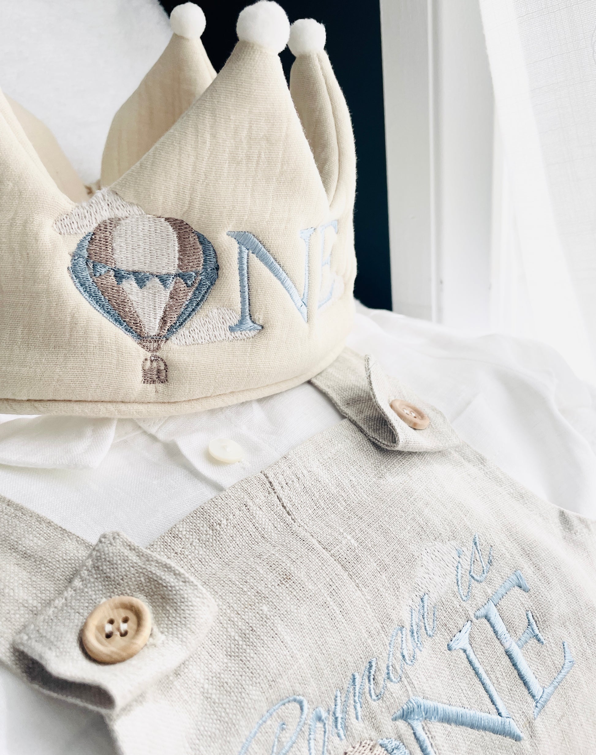 (child's name) over the hot air balloon (as seen for "henry cillian") or name under