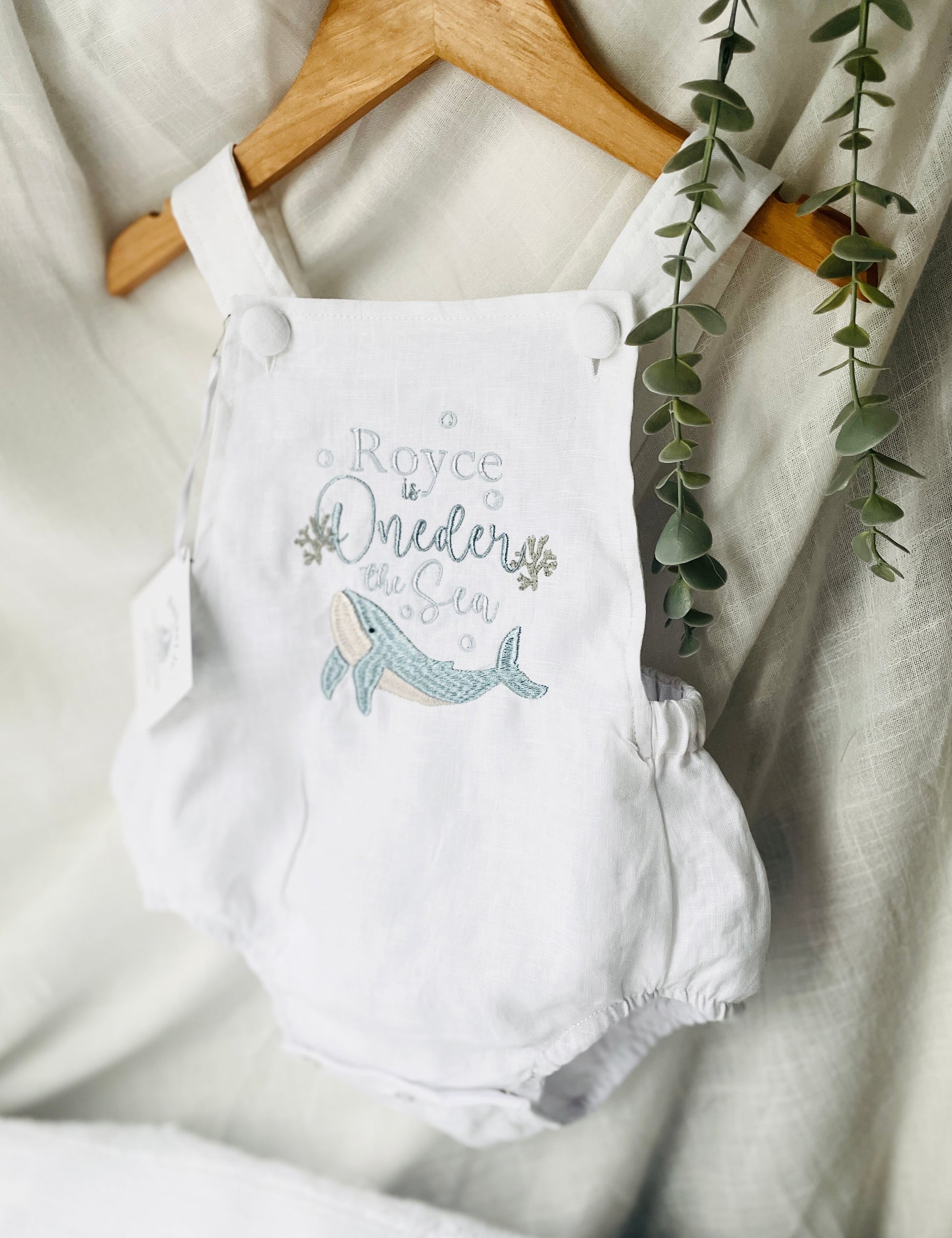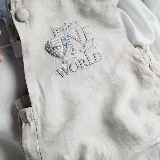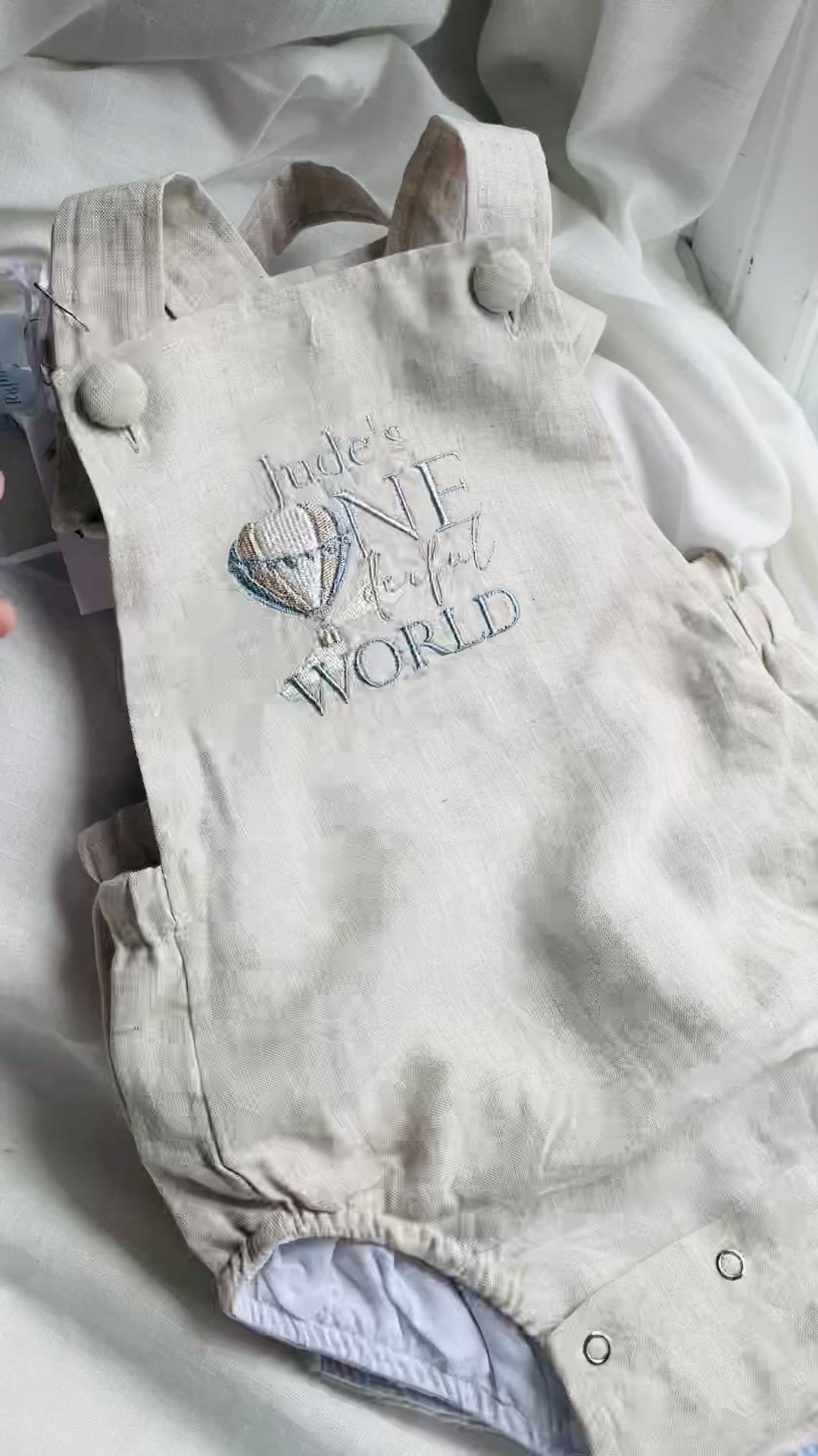 Gorgeous beige linen, cotton lined romper with optional embroidery.