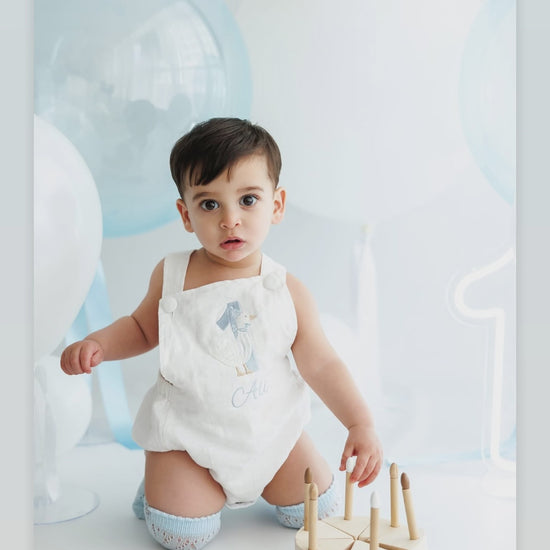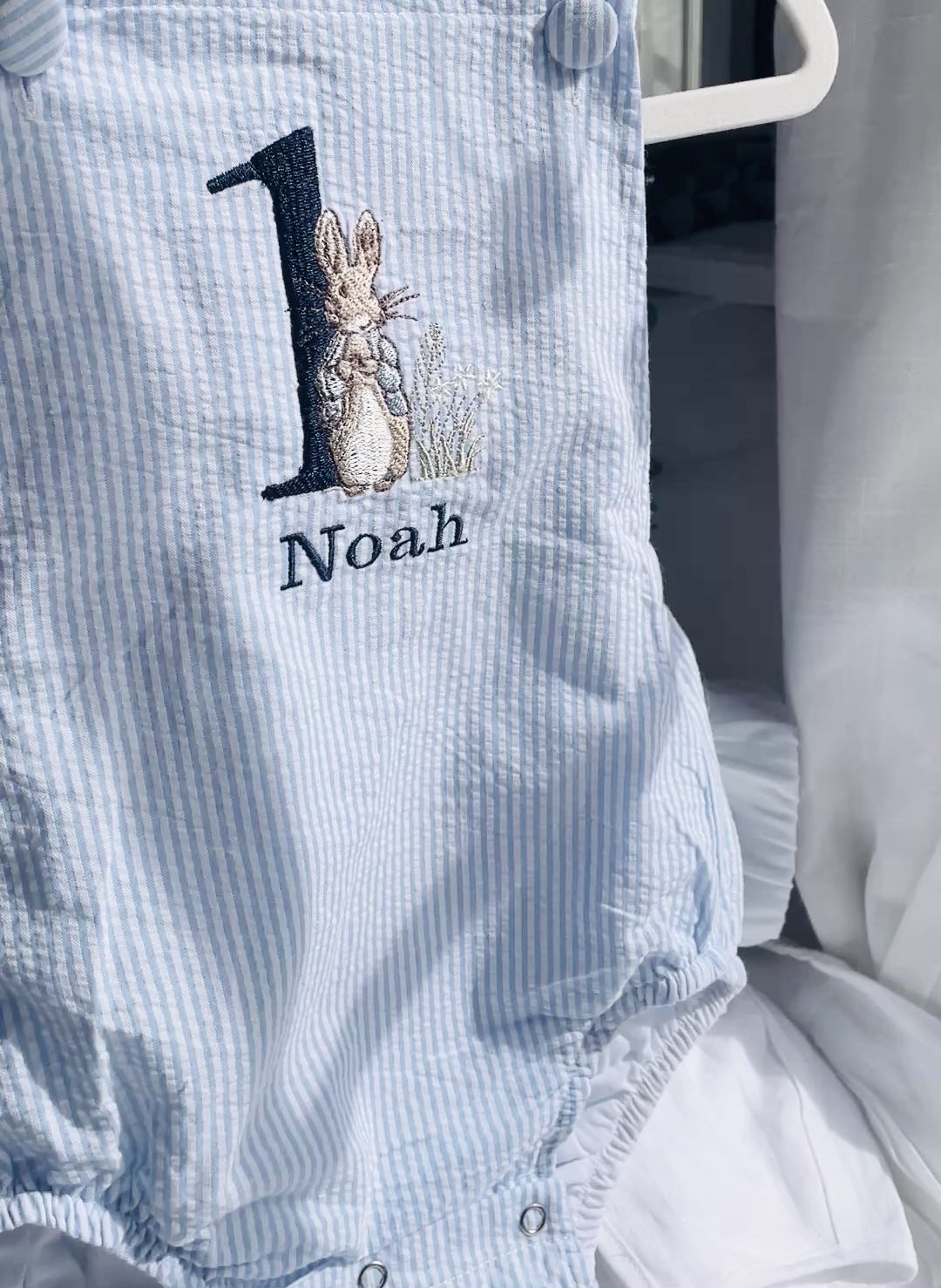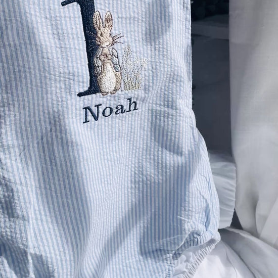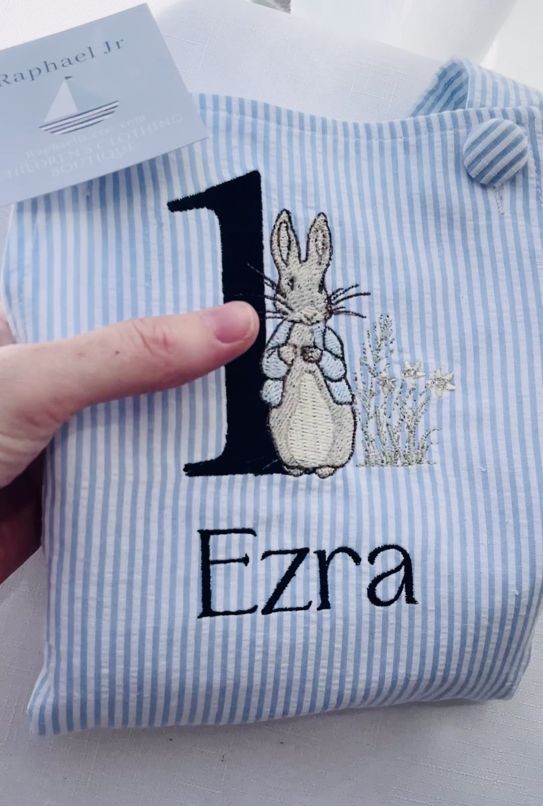 Boys Blue or white Birthday romper overalls Peter Rabbit