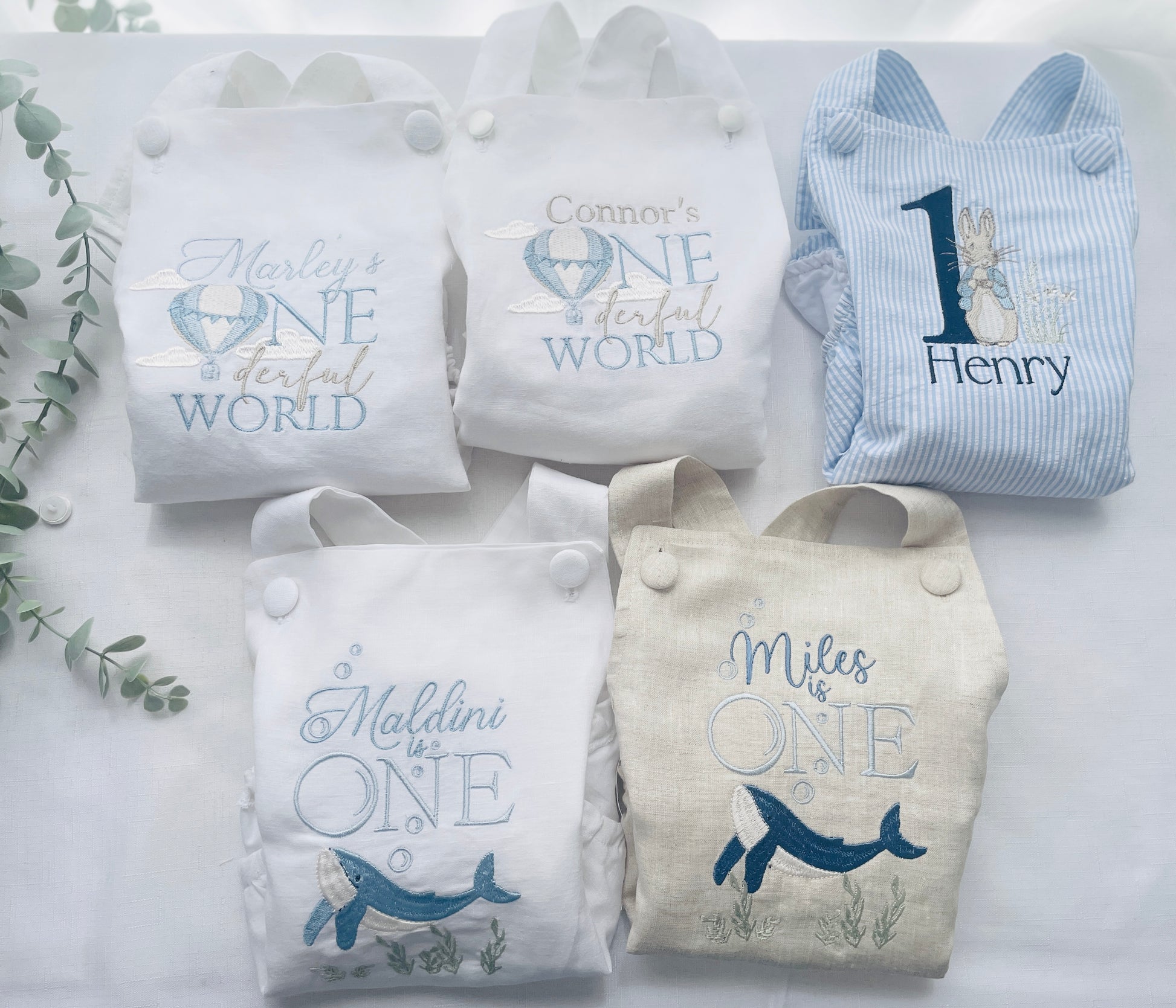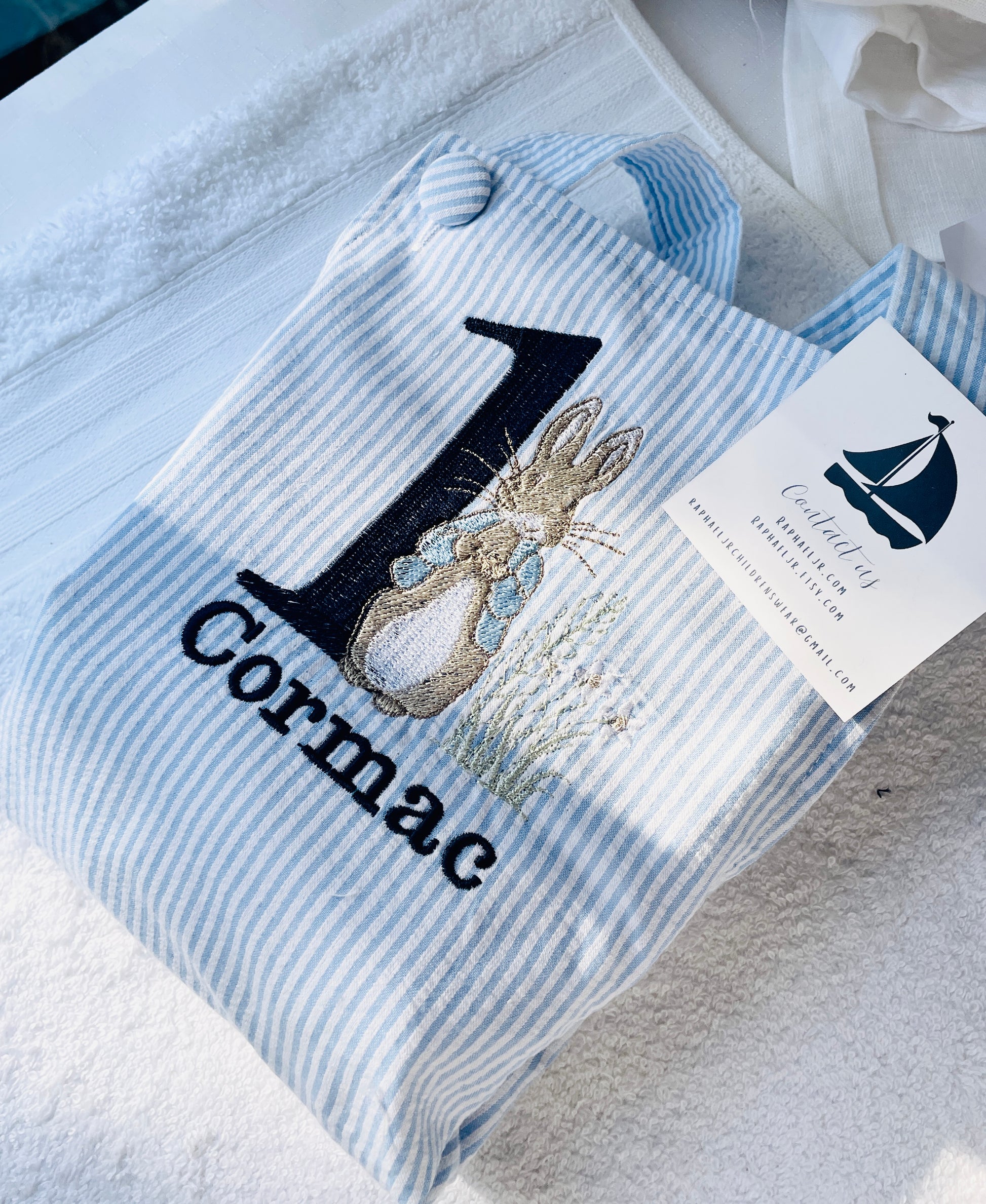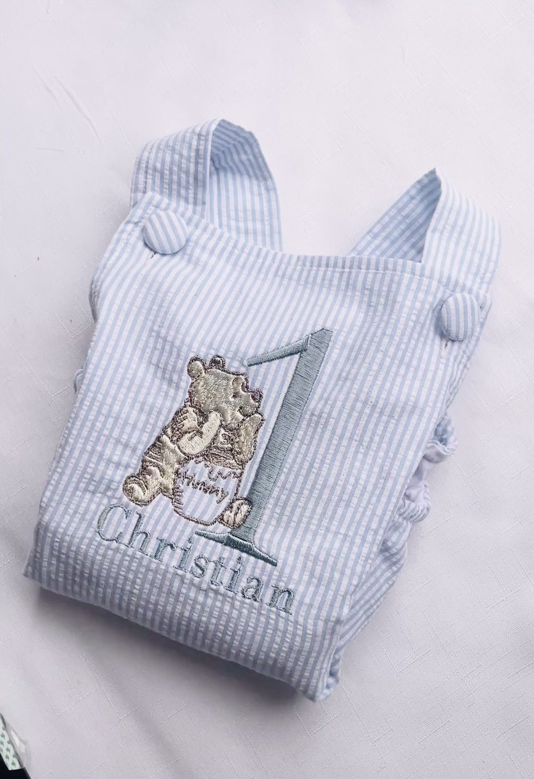 Boys Blue or white Birthday romper overalls Peter Rabbit