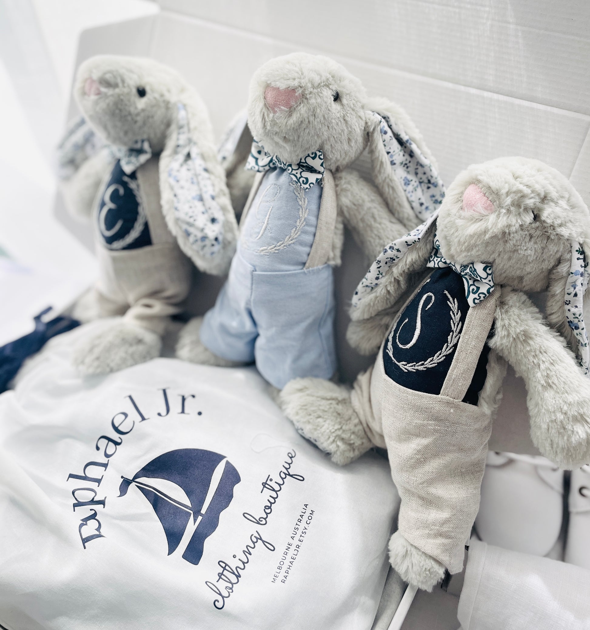 dressed bunny ; bunny fully dressed to match the outfit you’ve purchased, including embroidery
