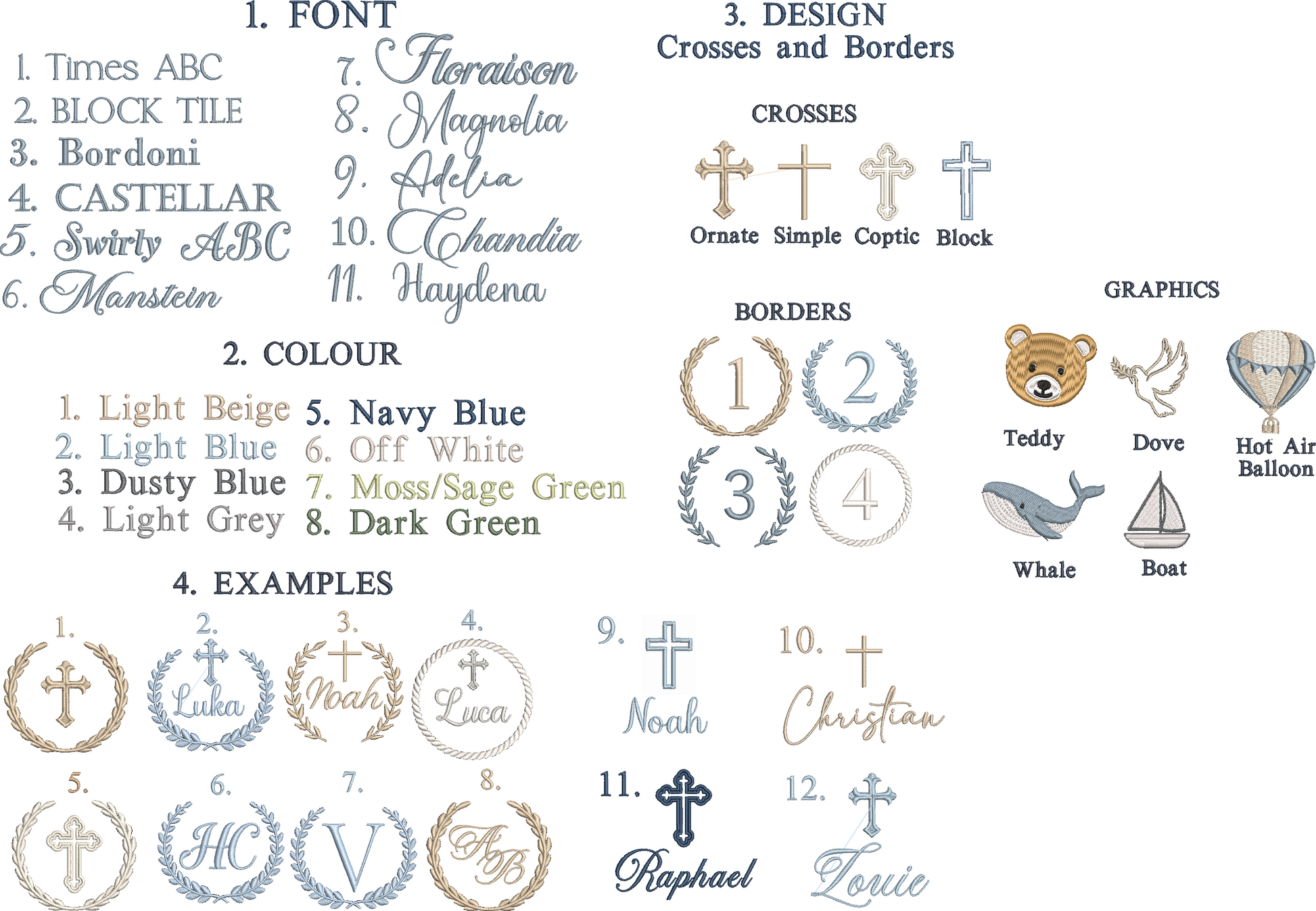 Would you like to make a set ? Please choose the additional items in the drop down menu, and we will create a stunning matching set, with coordinating colours, design and fit, it takes the hassle out of organizing their Baptism clothing.