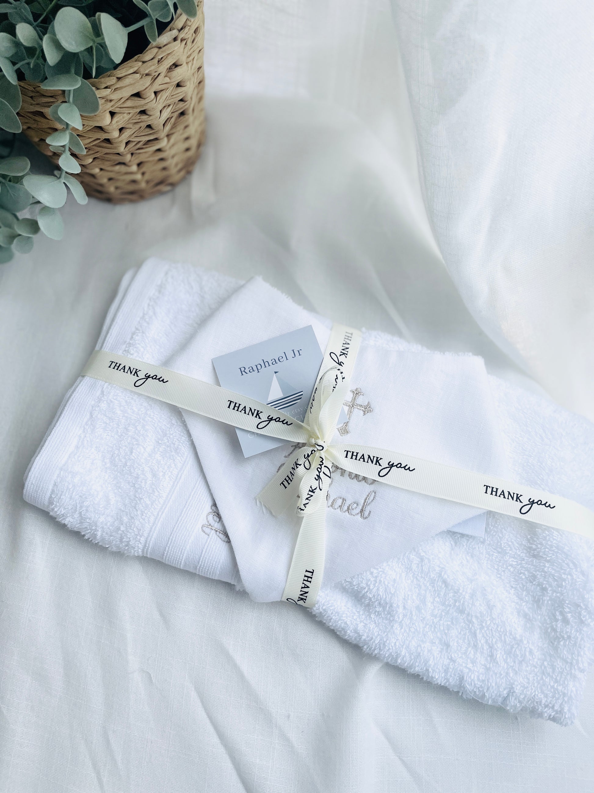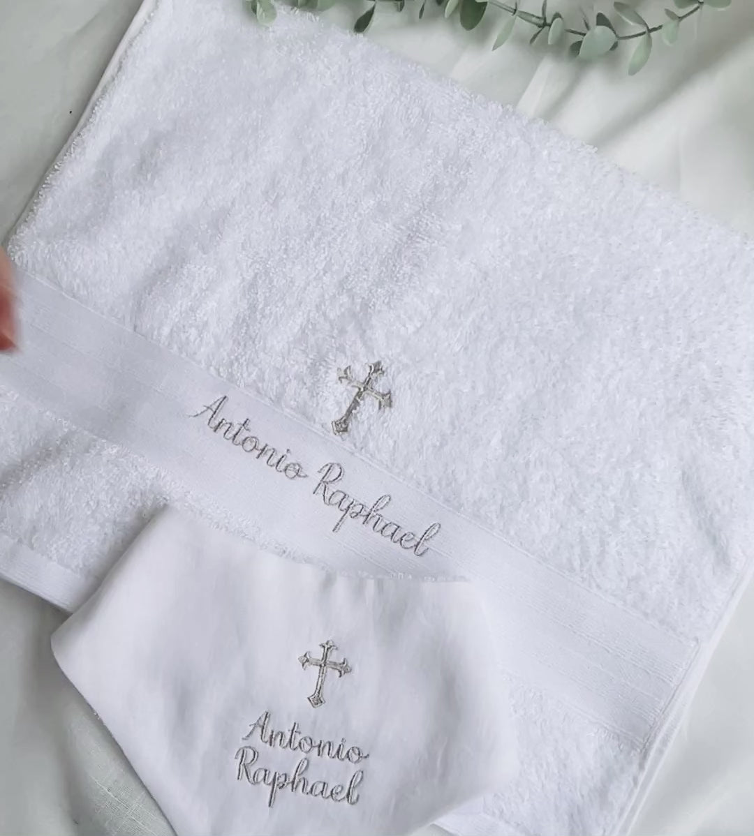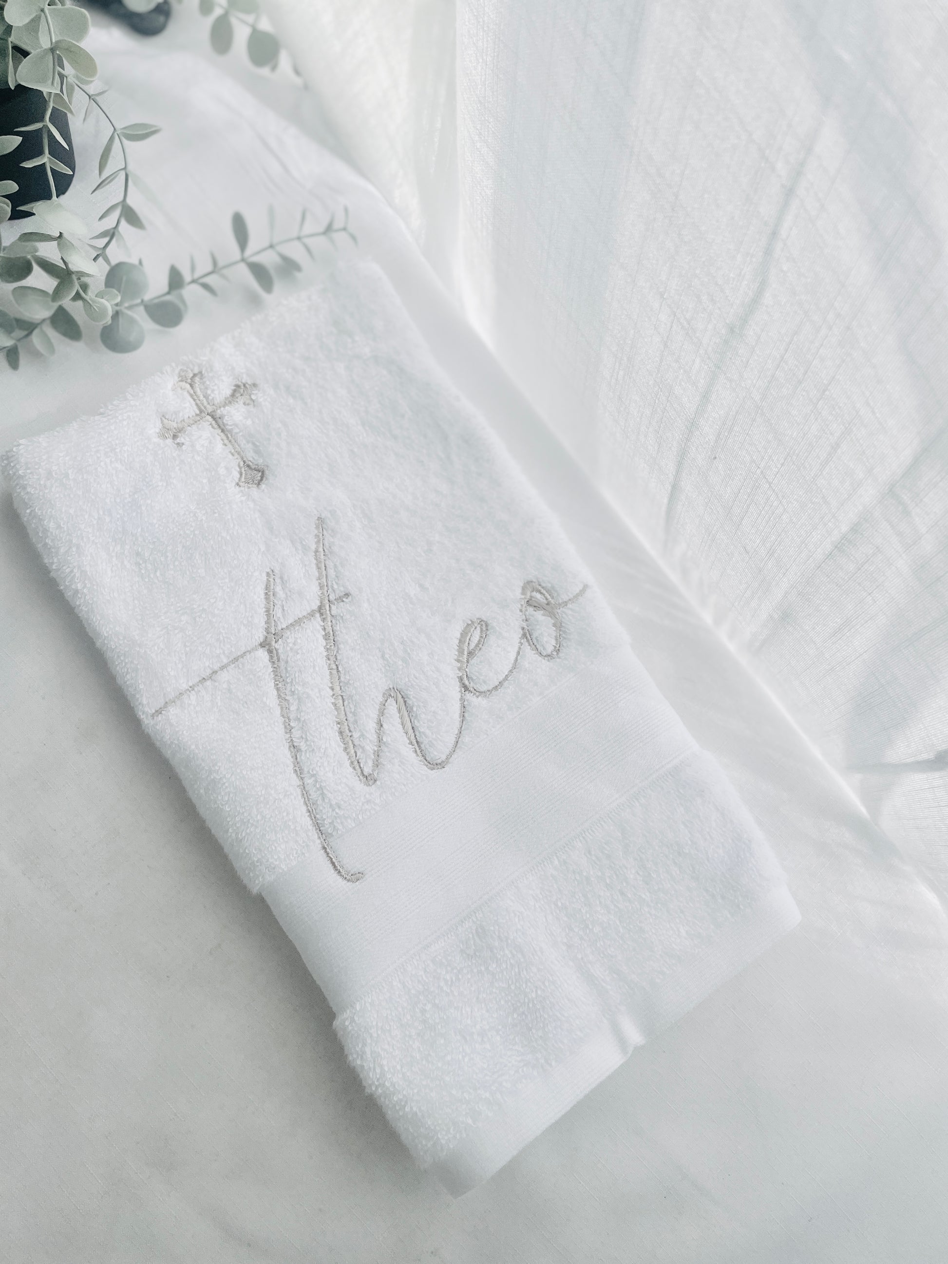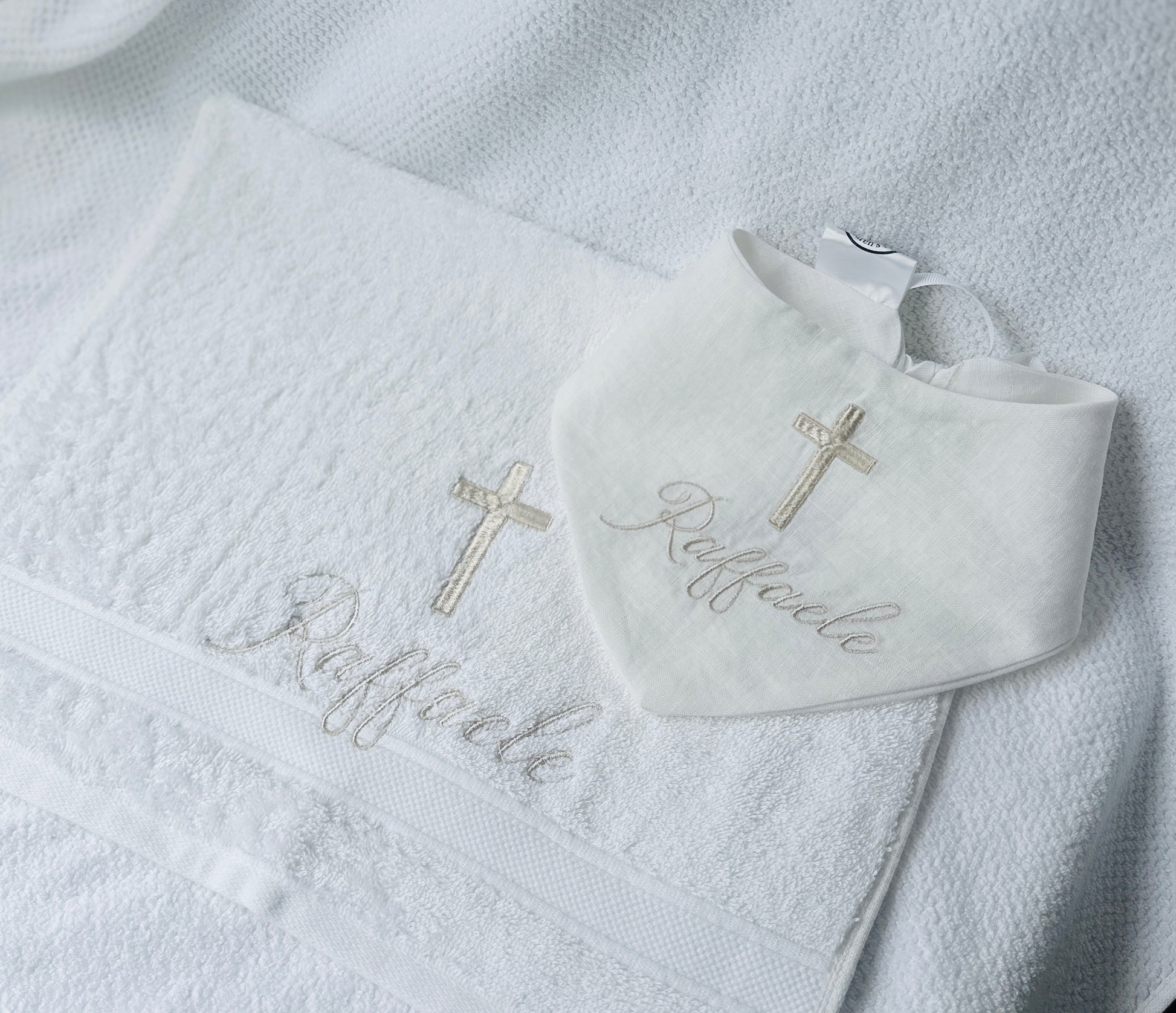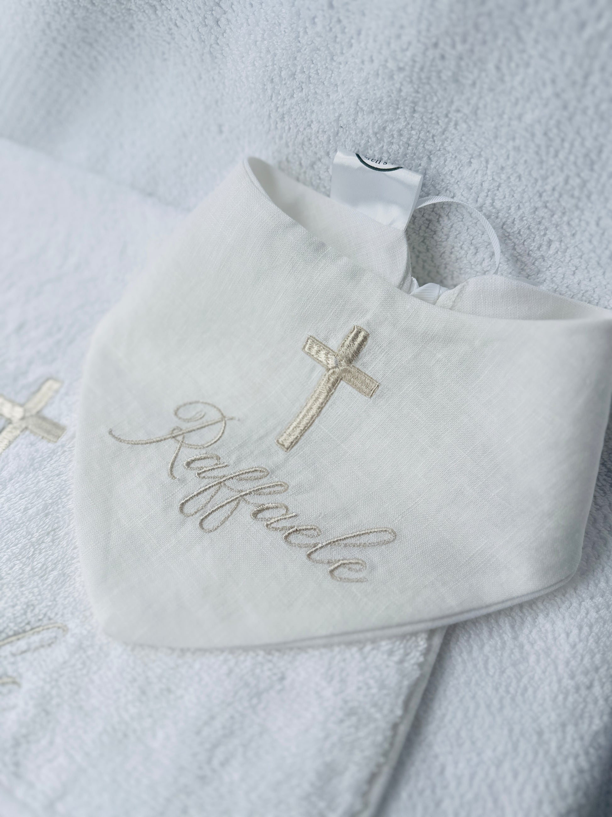 Personalised baptism christening hand towel with embroidery and optional bib
