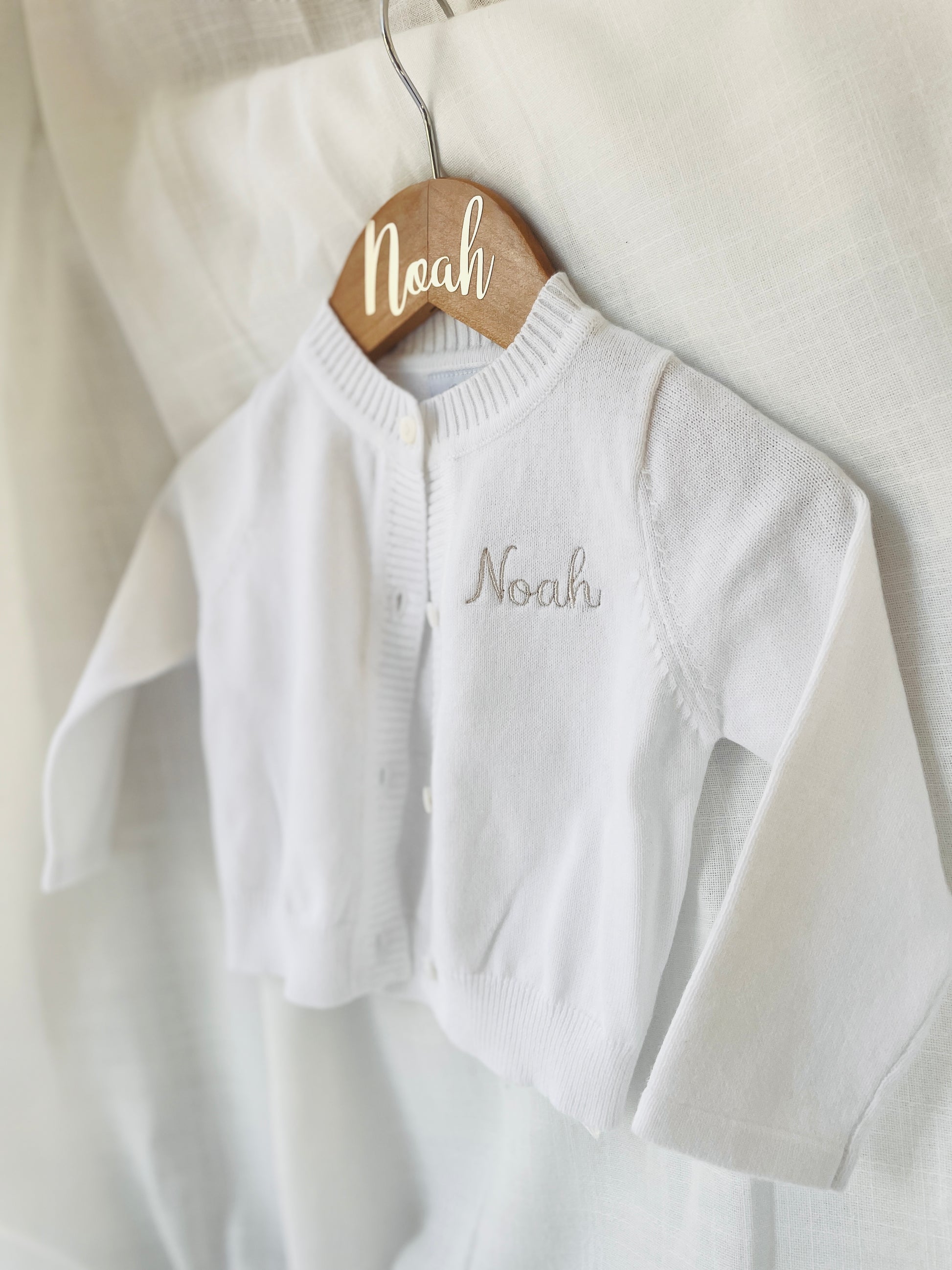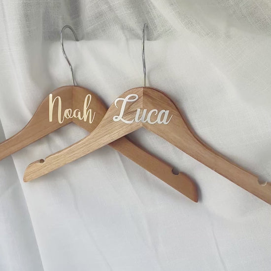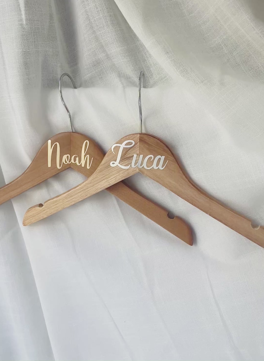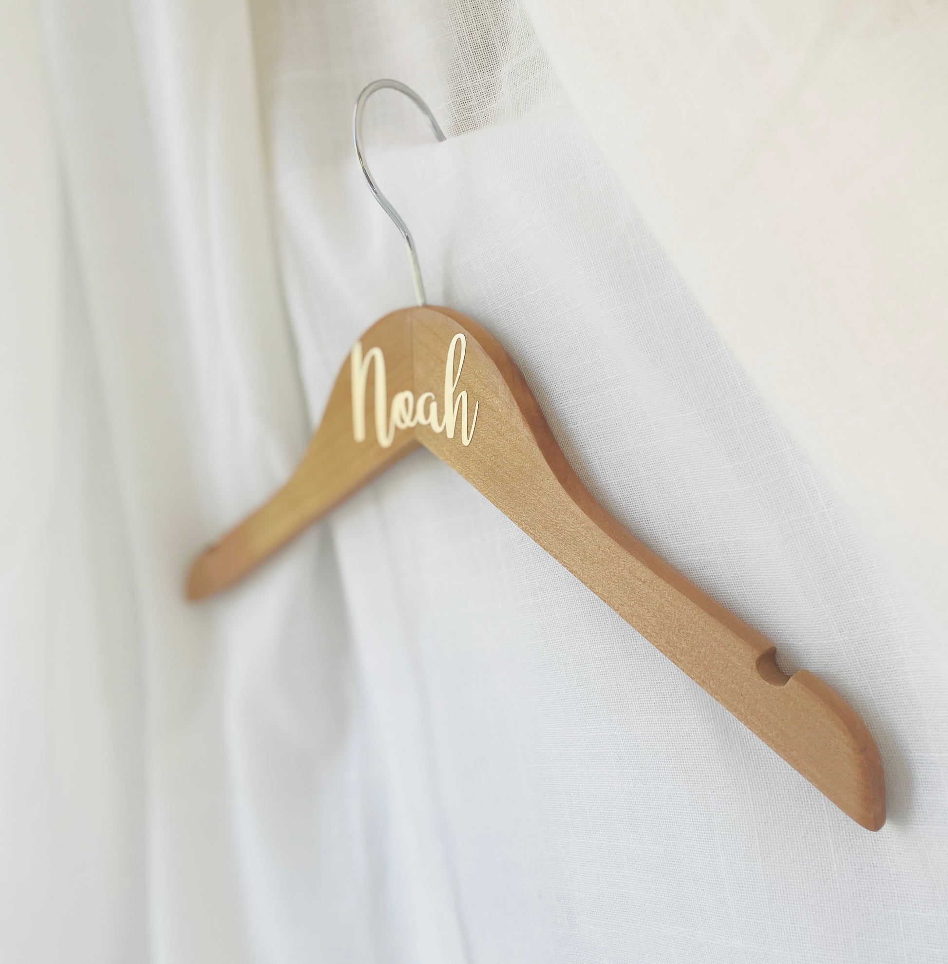 32cm wooden coat hanger, with gold, white, sage, navy, blue or silver name. Dates, Baptism, or cross also possible, just let me know!