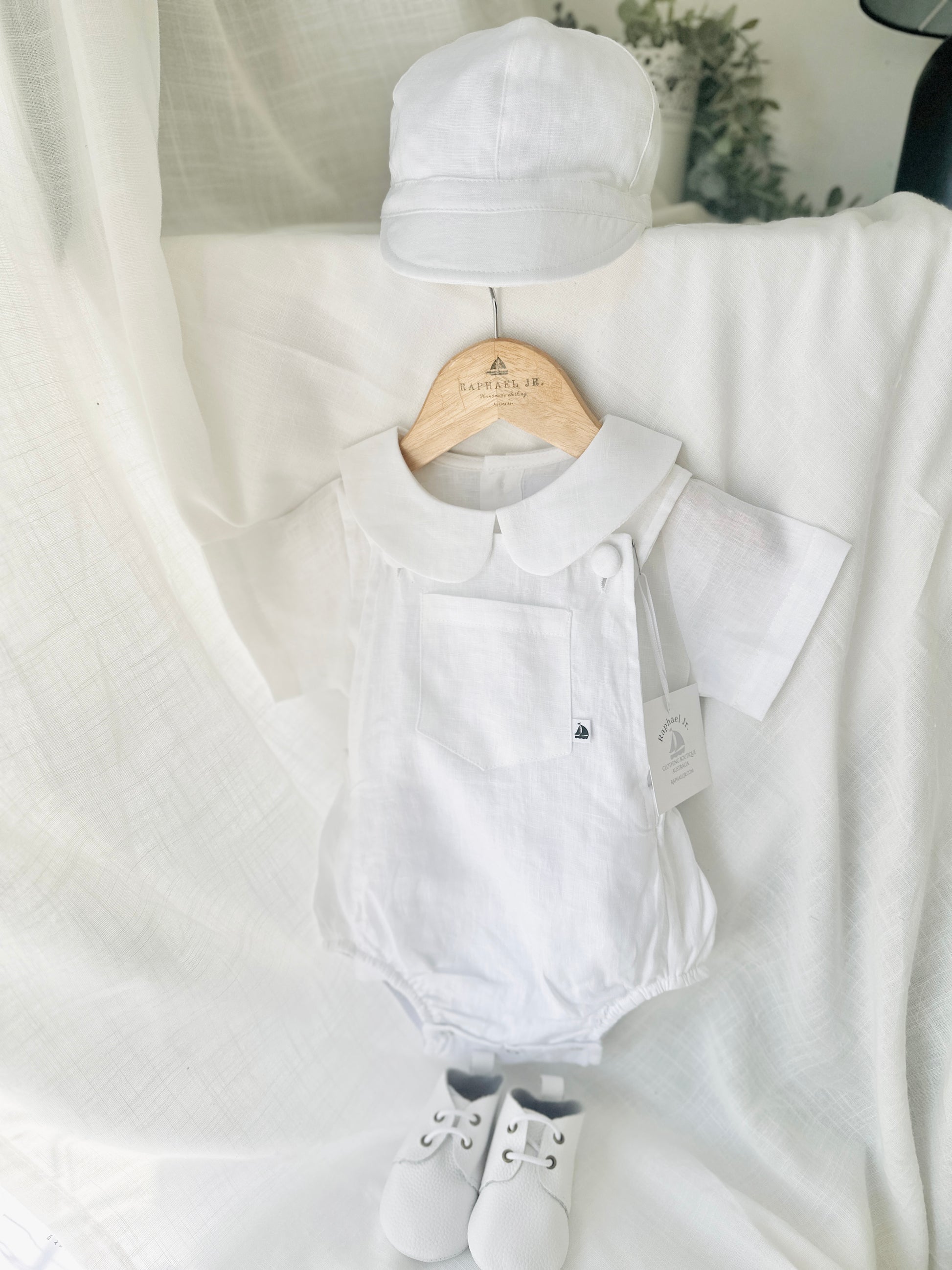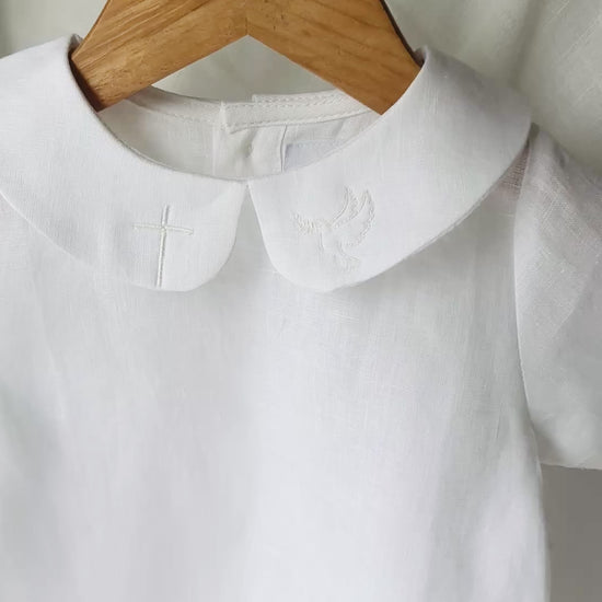 White Linen Baptism and Christening Gowns and Rompers