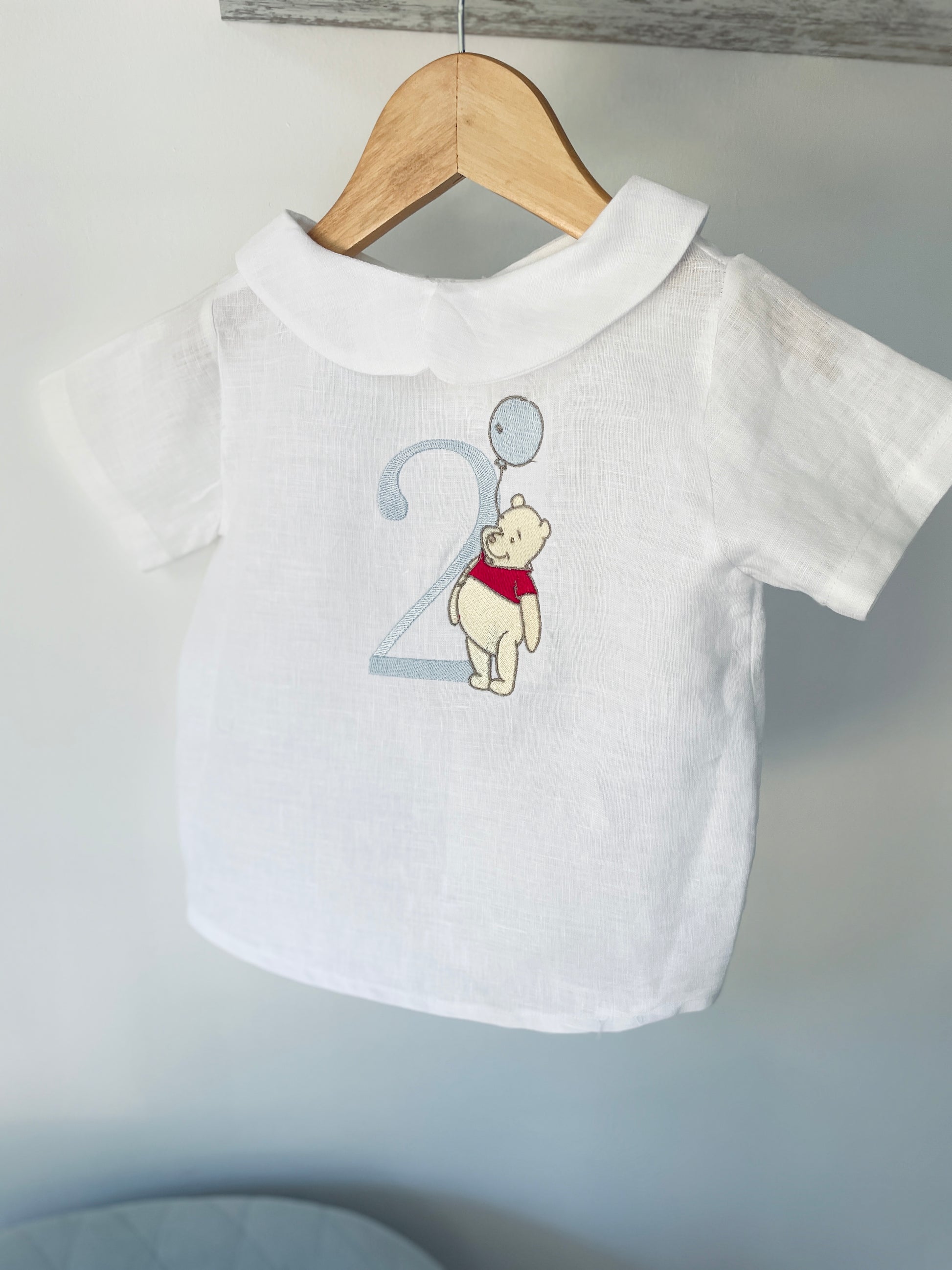 Embroidery can be on the collar or the chest, these lovely linen blouses pair beautifully with our white linen bloomers, or our linen rompers!