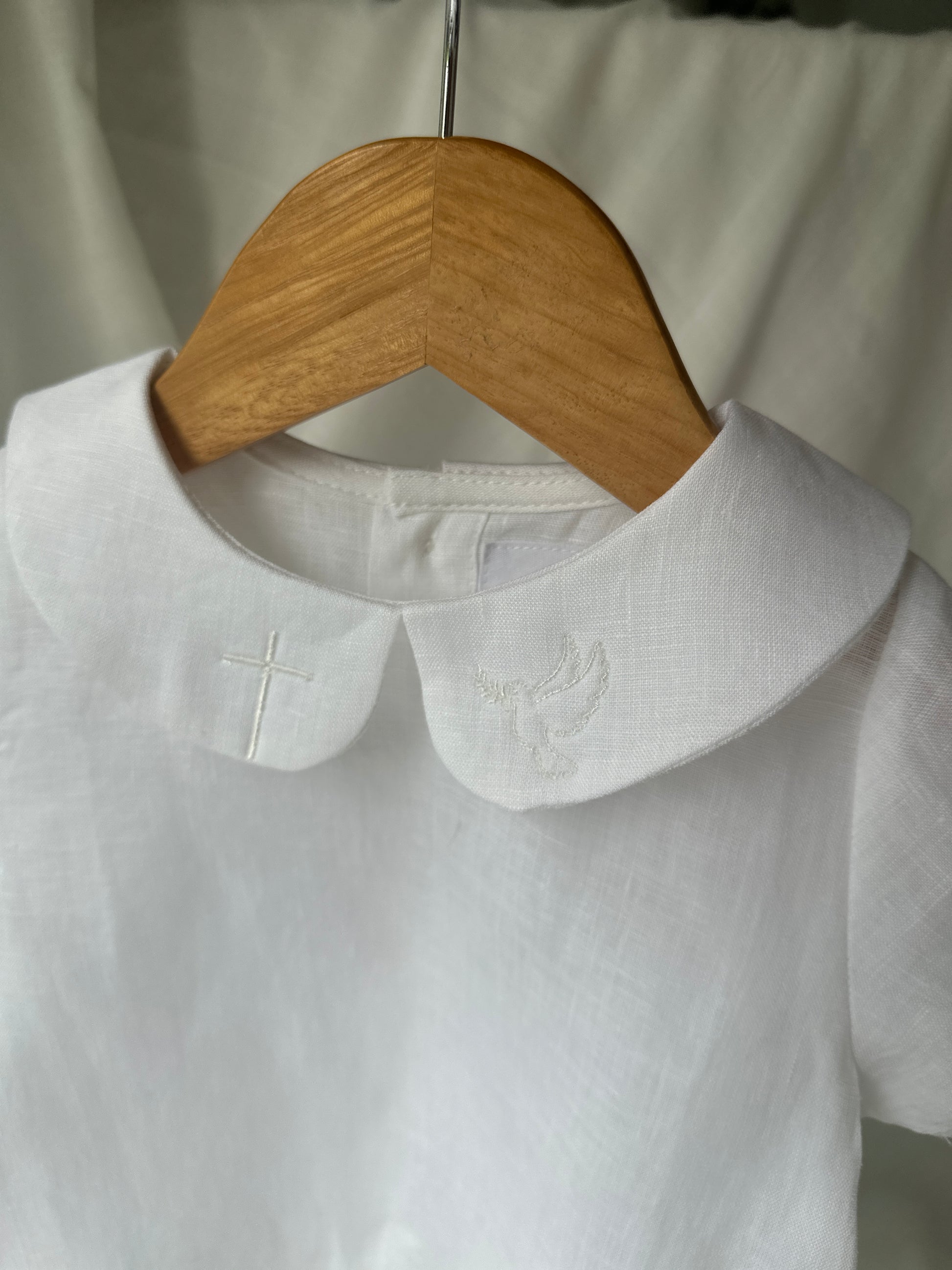 Peter Pan collar, buttons at back, pure linen, short sleeves