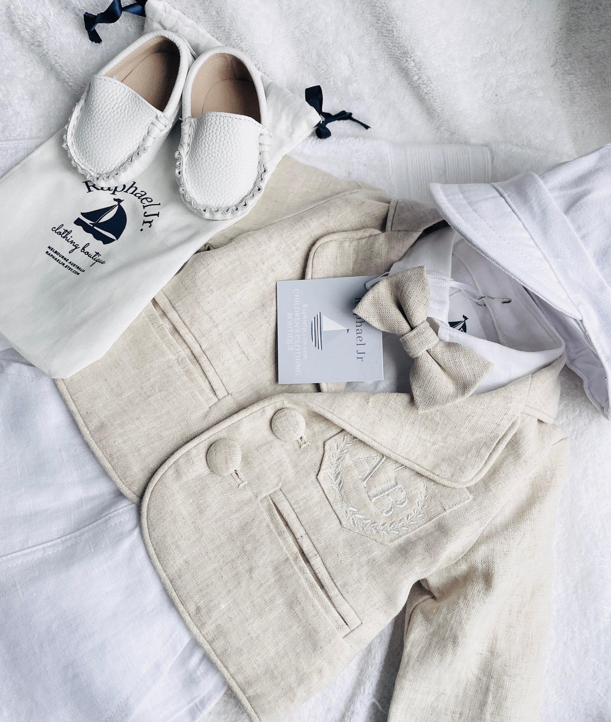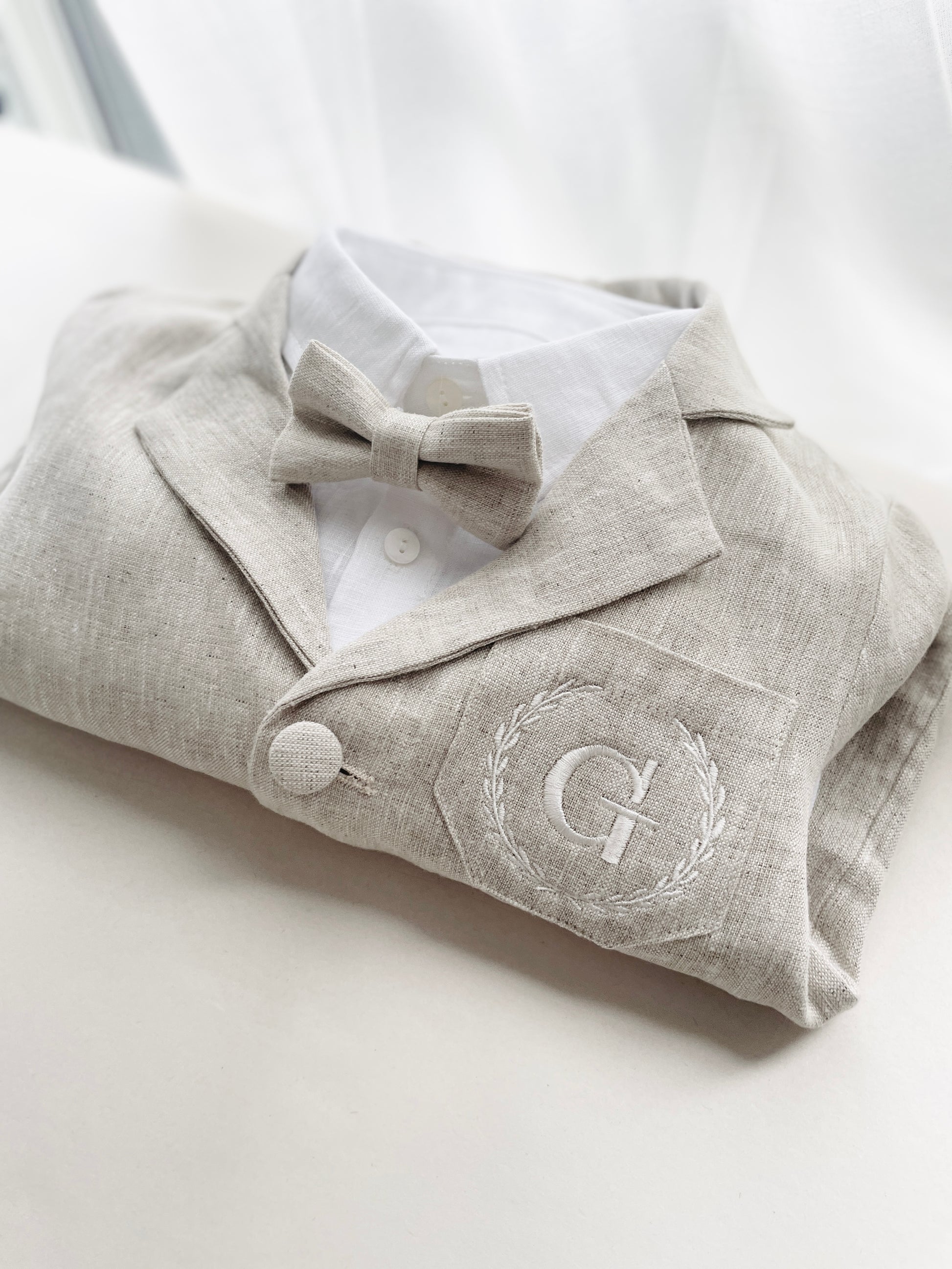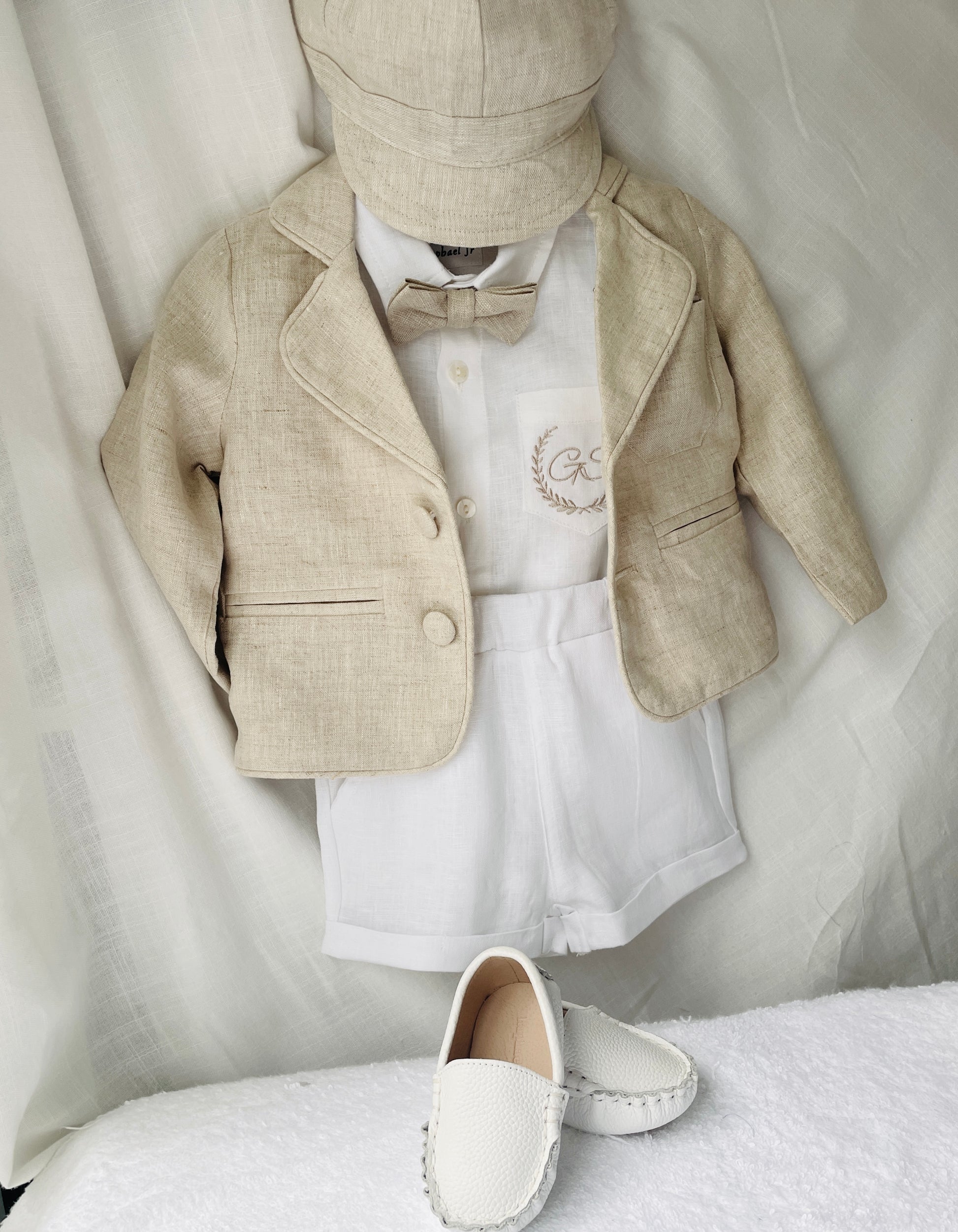 Linen Baptism Shorts, Suspenders and Shirt set with Optional Jacket