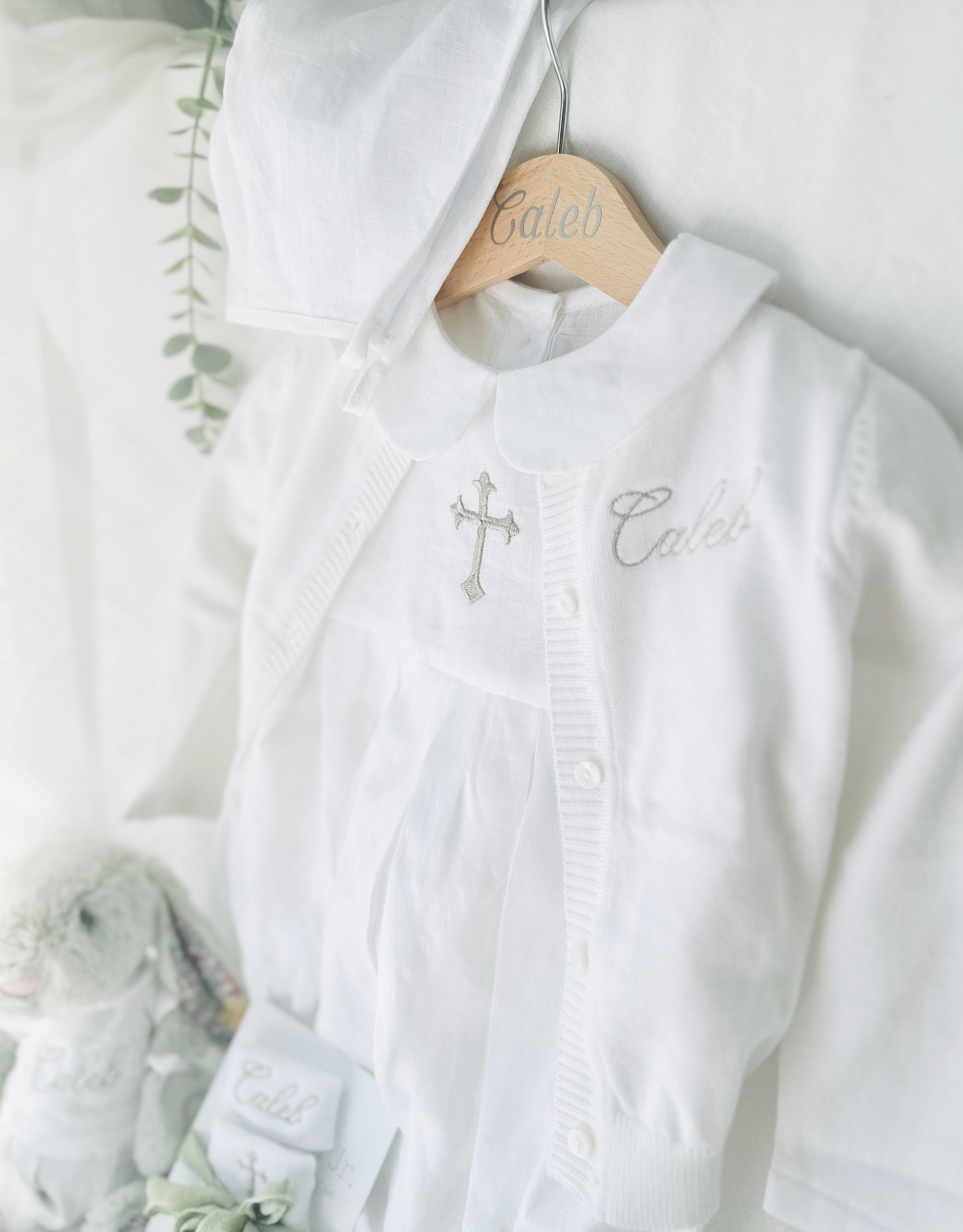 Would you like to make a set ? Please choose the additional items in the drop down menu, and we will create a stunning matching set, with coordinating colours, design and fit, it takes the hassle out of organizing their Baptism clothing.